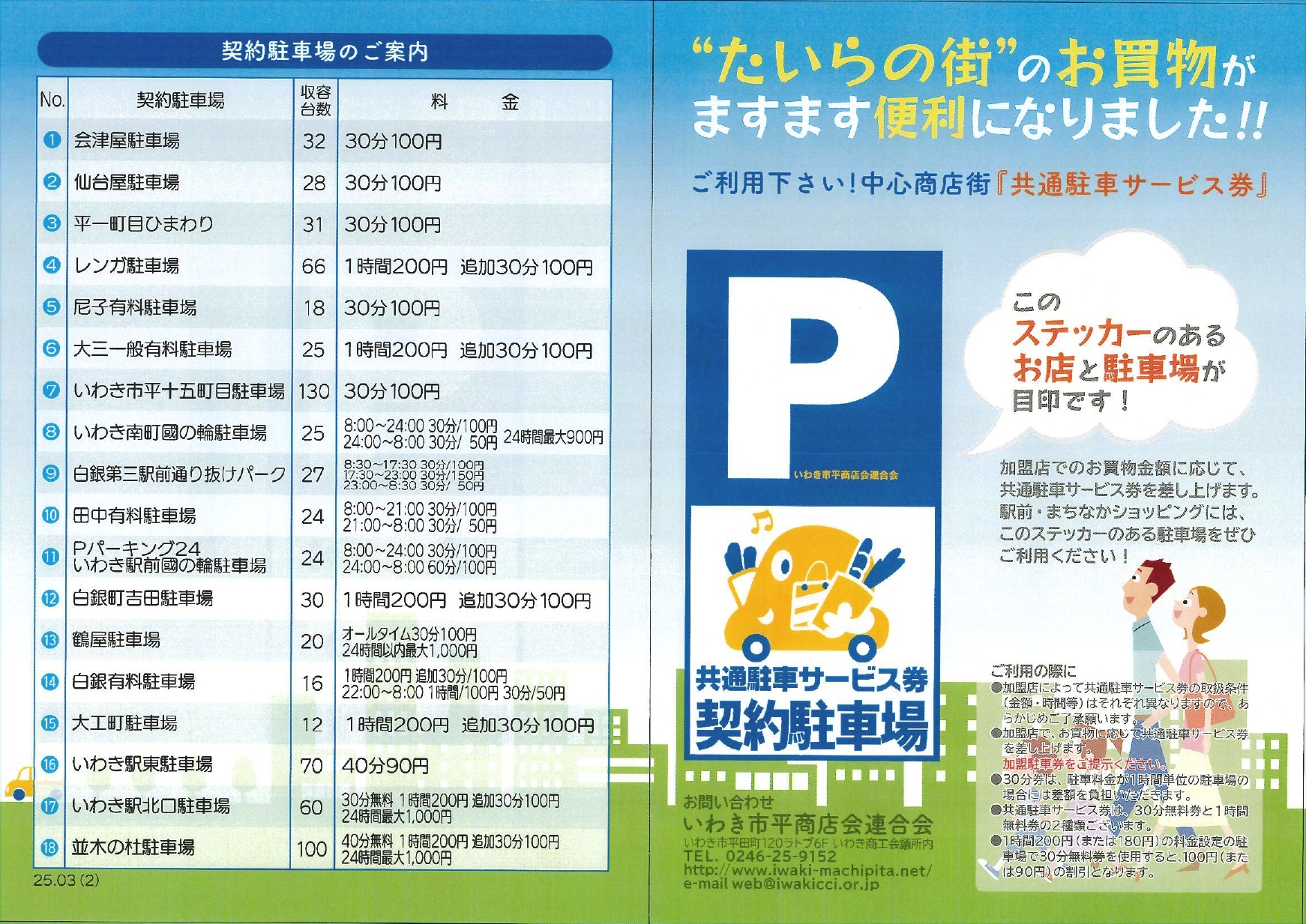 ※ご提示がない場合は駐車サービス券お渡しできません。 ※駐車サービス券の再発行はできません。 ※駐車料金の残額は各駐車場で精算してください。