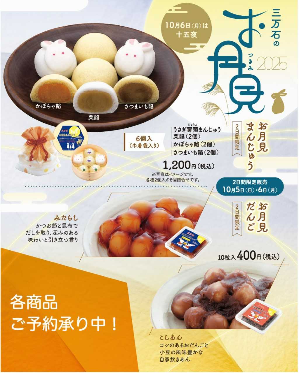・お月見限定の3種類のおまんじゅうを詰め合わせた「お月見まんじゅう」