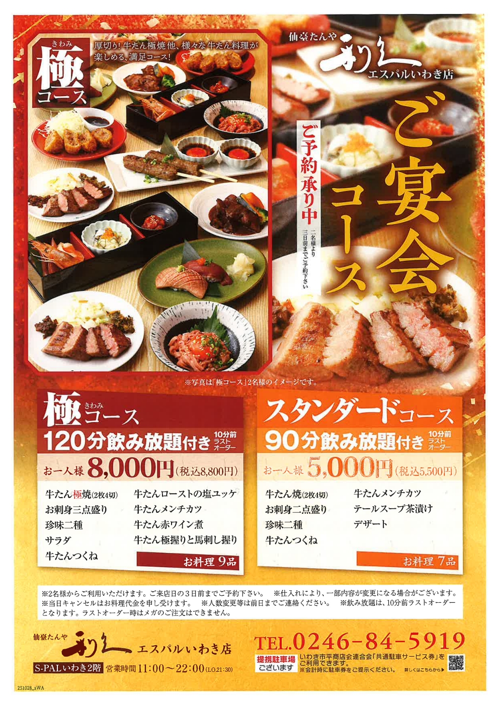 利久エスパルいわき店では、ご宴会コース承り中です!