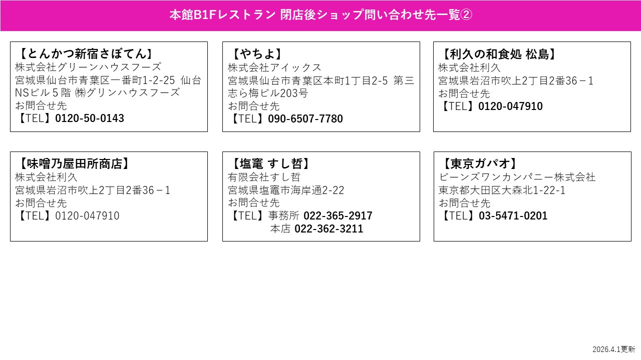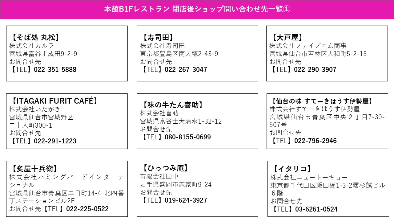 ・閉店後のお問合せ先:03-6434-7294(受付時間9:00~18:00)