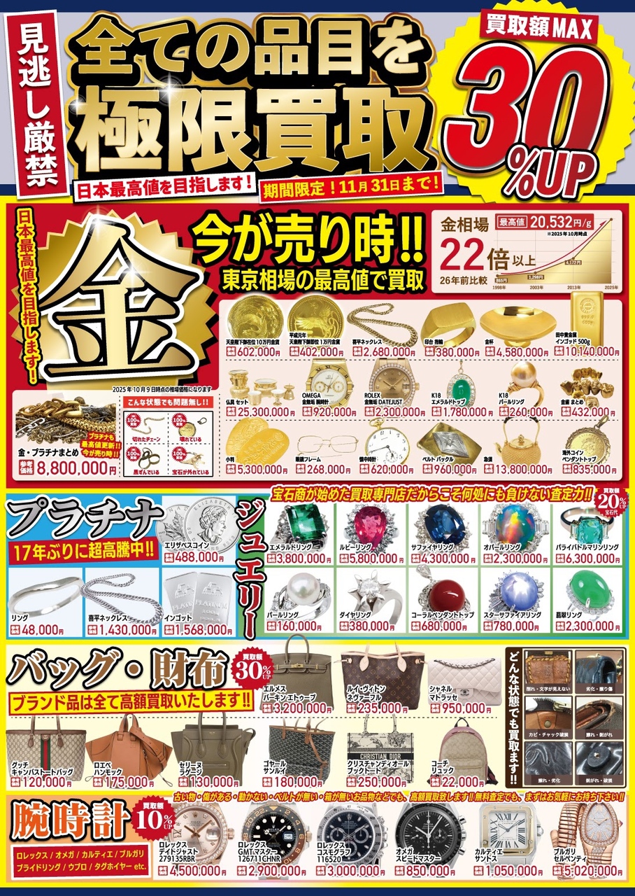 当店はお客様が大切にさせていたお品物を東京本社で研修を受けた査定士が丁寧に査定いたします!ご自宅に眠っている気になるお品物を“驚きの高額買取”させていただきます!