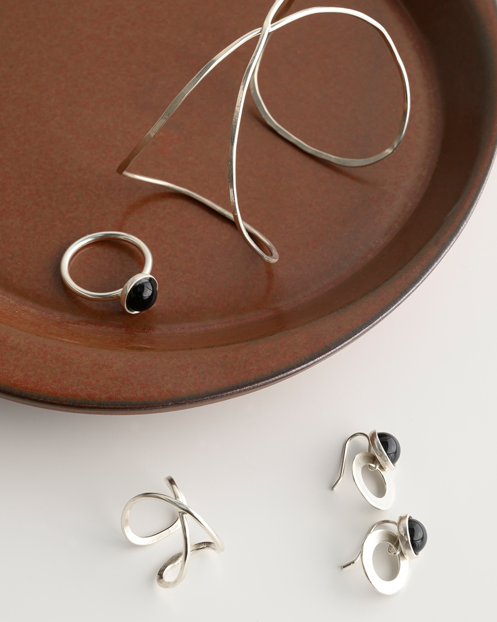 ②SILVER AND ONIX RING/EARRINGS・・・17,600/19,800円(税込)
